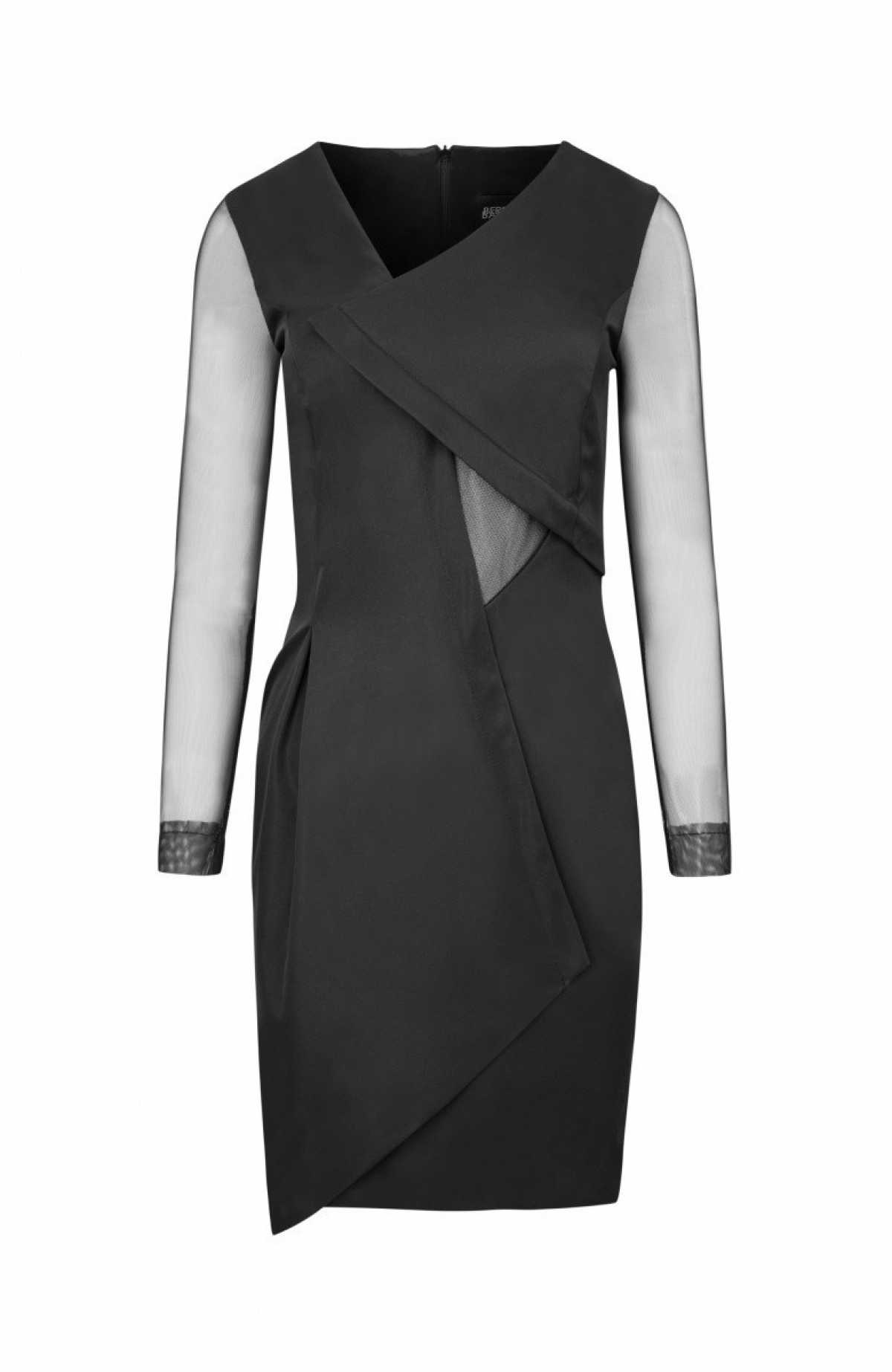 Bardzo ciekawa propozycja od Jagody Piekarskiej, która i tym razem wplotła architektoniczne elementy do swojego projektu. Asymetryczne cięcia oraz tiulowe rękawy sprawiają, że nie jest to klasyczna mała czarna.