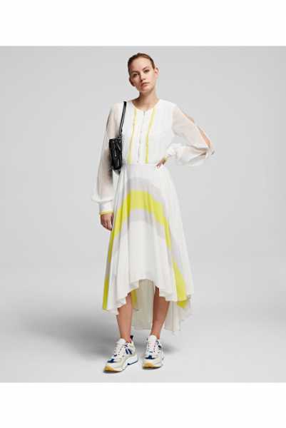 Najnowsza kolekcja marki Karl Lagerfeld Spring Summer 2020 prosto z wybiegów Mediolanu. Wyjątkowy krój oversize, który możesz nosić na co dzień np. ze sneakersami. Cytrynowe i szare wstawki to nawiązanie do najmodniejszych pastelowych odcieni na ten sezon. Asymetryczny dół i bufiaste rękawki podkręcają design tej sukienki. Dla nowoczesnych kobiet, które lubią eksperymentować.