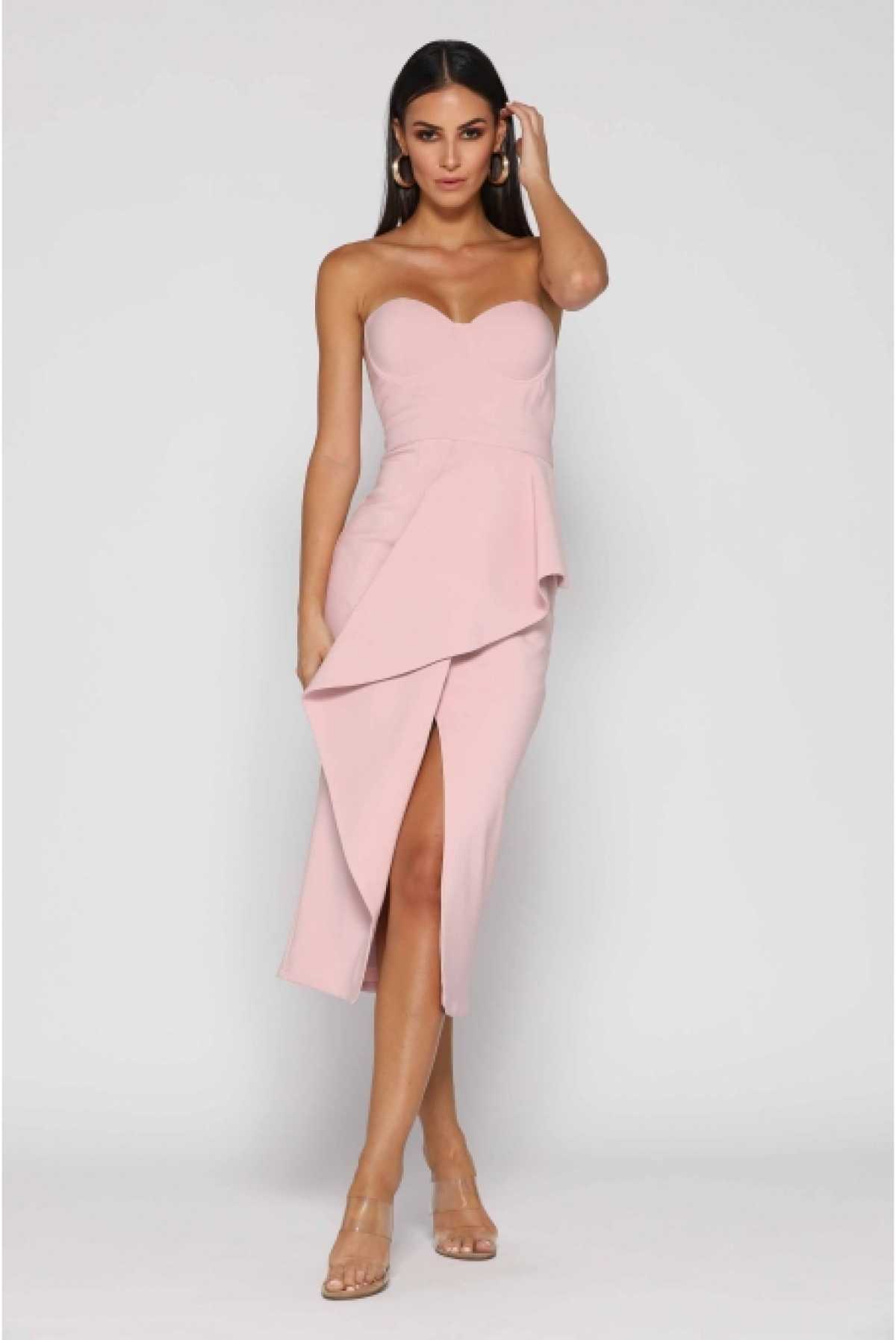 Zmysłowa sukienka midi z asymetryczną spódnicą oraz ciekawym przeszyciem delikatnie odsłaniająca nogi. Gorsetowa góra nie tylko pięknie wymodeluje sylwetkę ale też podkreśli kobiece kształty: wąską talię i ładny biust. Pamietajmy jednak, że gorset musi być idealnie dopasowany ponieważ to on będzie przyciągał wszystkie spojrzenia. Sukienka idealnie sprawdzi się na przyjęciu , imprezie okolicznościowej czy urodzinach.