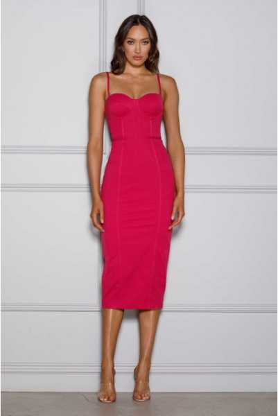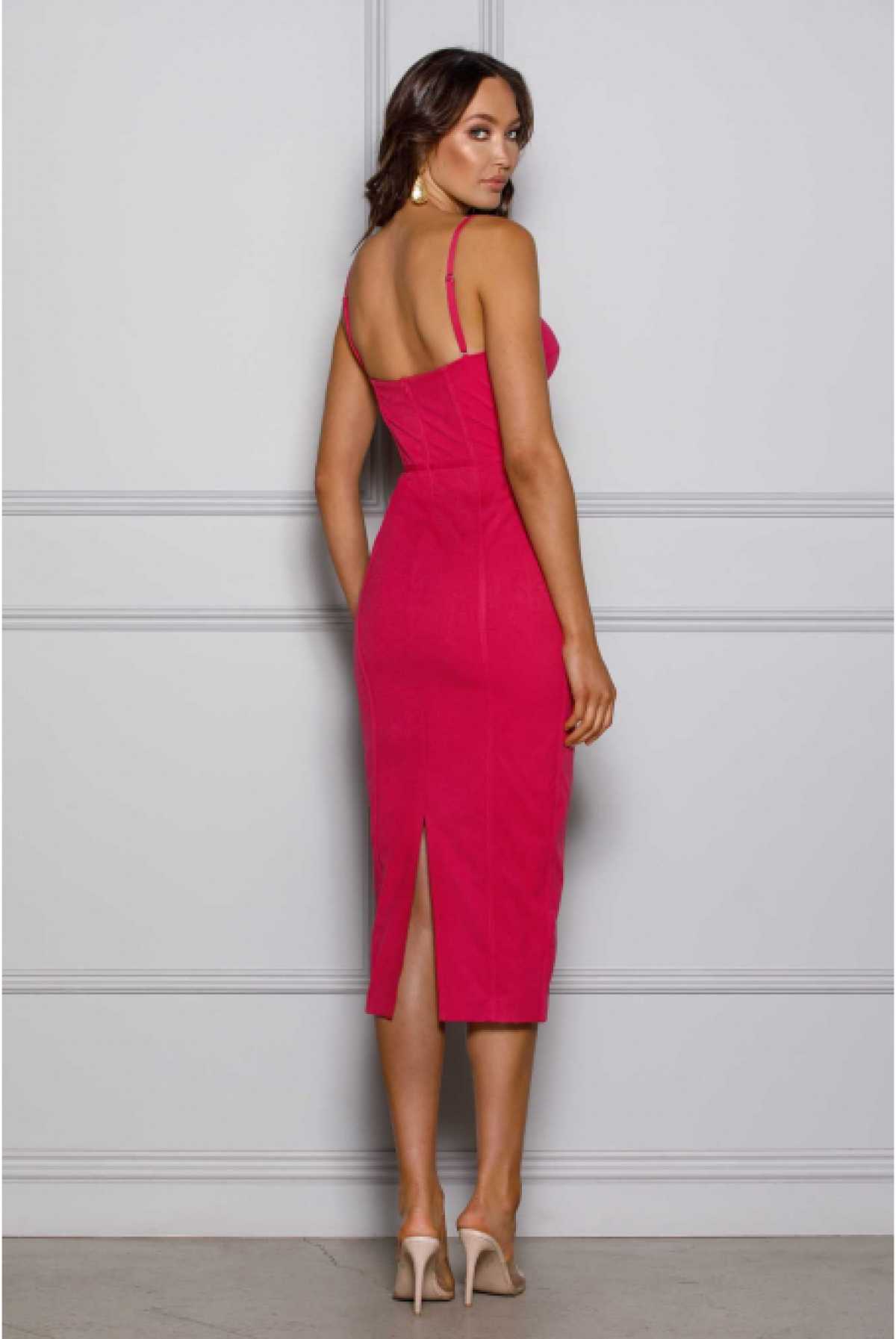 Dopasowana sukienka typu bodycon o intensywnym kolorze. Z gorsetem z dekoltem w serduszko. Z tyłu - małe rozcięcie. Sukienka mocno podkreśla sylwetkę. Wypożycz na randkę, Walentyki, wesele, urodziny czy inną imprezę lub spotkanie. Sukienka modeluje sylwetkę, podkreśla subtelnie talię i biust. Noś z dodatkami w odcieniu czerni, beżu i złota.