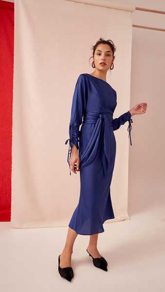 Luksusowa sukienka midi w odcieniu kobaltowym. Wykonana z satynowej wiskozy o wyjątkowej jakości, która zagwarantuje Ci wygodę i idealne dopasowanie. Efektowne ściągnięcia w rękawach i pas w talii dodają tej sukience charakteru. Wypożycz na wesele, bankiet, wieczorową galę bądź spotkanie biznesowe.