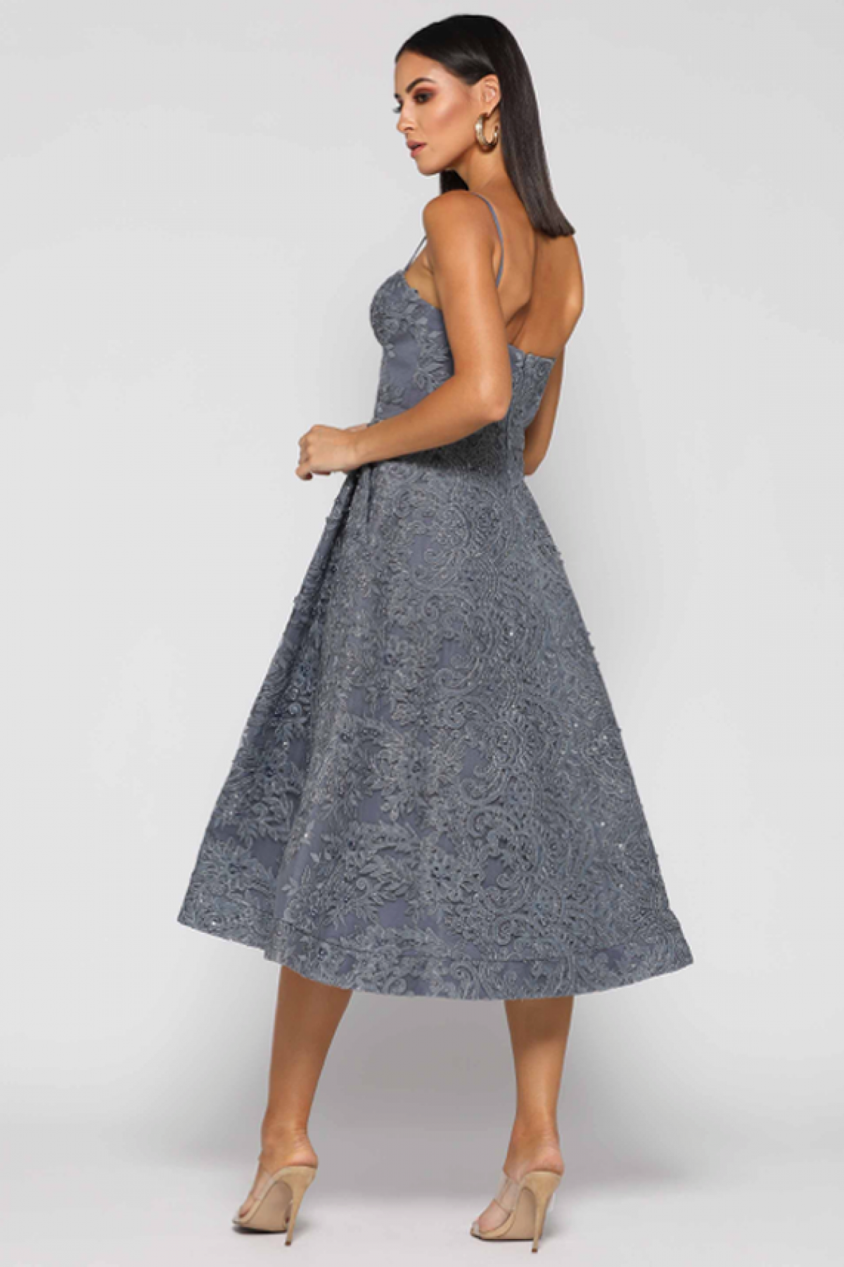 Niezwykle elegancka sukienka midi z gorsetową górą, lekko rozkloszowaną spódnicą i koronkowymi zdobieniami sprawdzi się idealnie na przyjęciu weselnym , uroczystej kolacji czy wielkiej gali. Koronki niezmiennie pozostają symbolem kobiecości podkreślając u kobiet ich piękno. Pamietajmy, że koronkowe sukienki nie należą do lekkich i zwiewnych dlatego ostrożnie dobierajmy dodatki, żeby całej stylizacji dodać naturalnej lekkości.