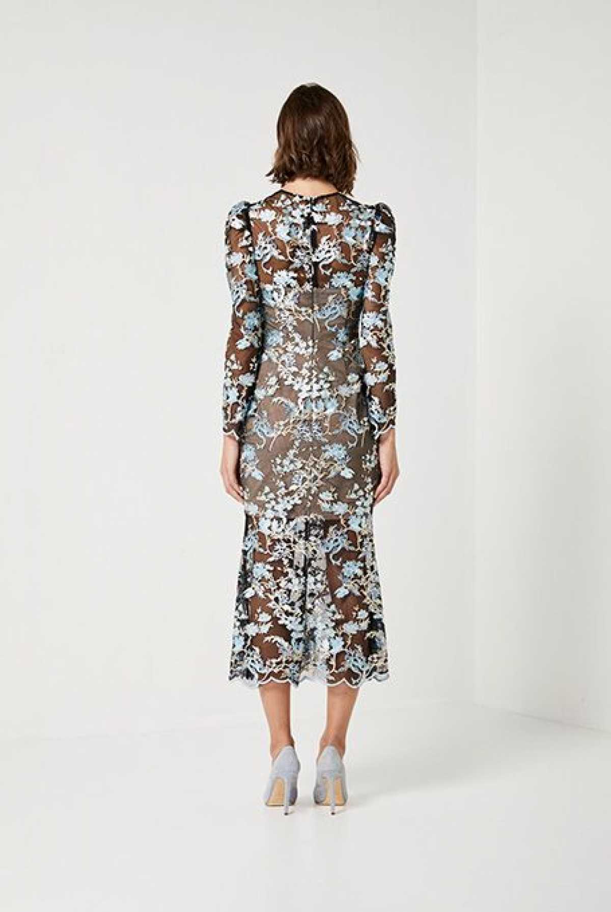 Sukienka niczym najpiękniejsze dzieło sztuki! Przezroczystości i subtelne hafty sprawiają, iż jest to kreacja jedyna w swoim rodzaju. Odcienie błękitu i złota zagwarantują Ci romantyczny, wręcz bajeczny nastrój. Michelle to luksusowa propozycja odzwierciedlająca najlepsze projekty z wybiegów kolekcji haute couture.
