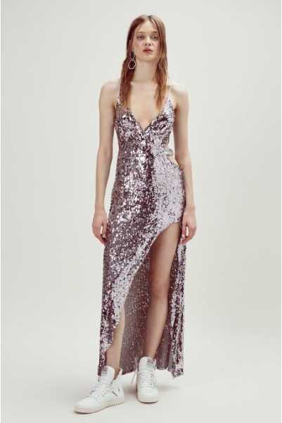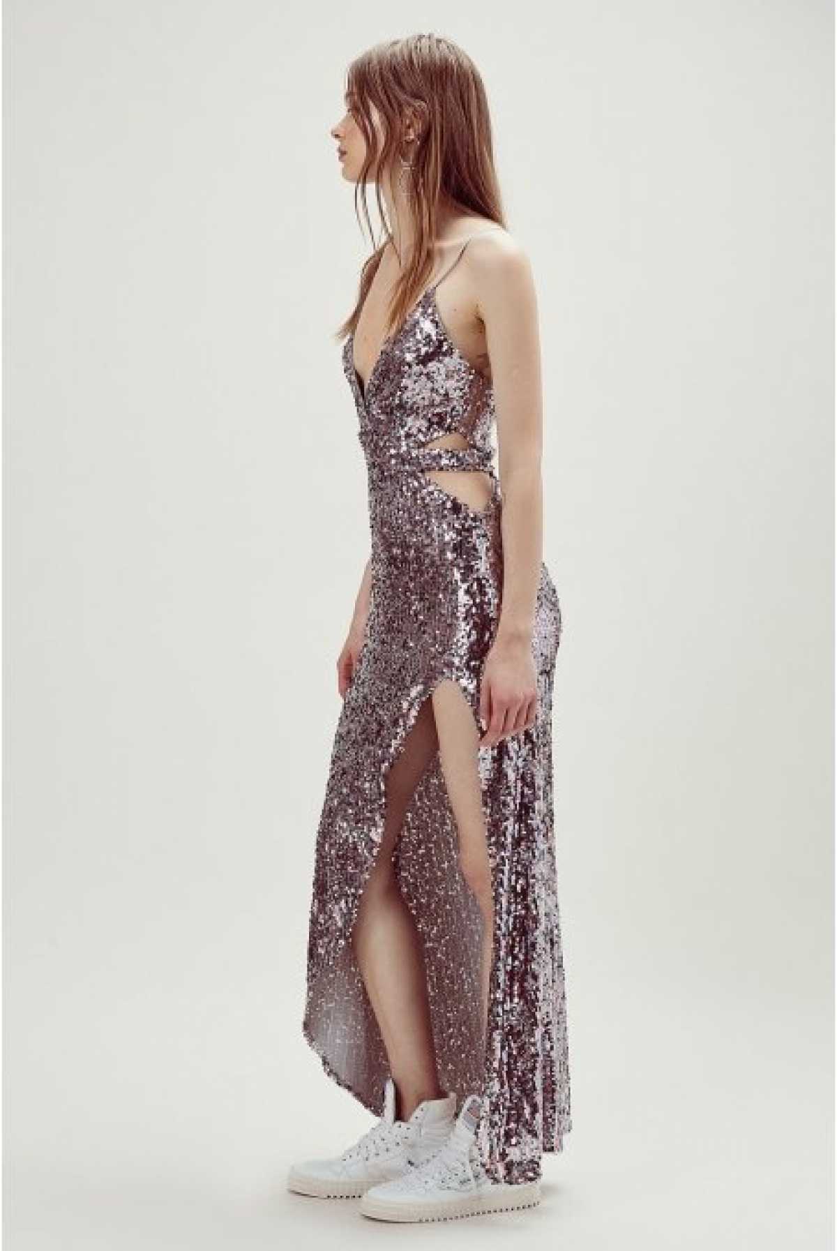 W tym roku cekiny nosimy nie tylko w Sylwestra. Zabłyśnij dzięki tej wyjątkowej kreacji z połyskiem w odcieniu brudnego różu. Odważne rozcięcie na nodze i głęboki dekolt podkręcają seksapil. Połyskujące cekiny pozwolą Ci lśnić w światłach reflektorów i zostać królową wieczoru. Bądź odważna, pewna siebie i olśniewająca!