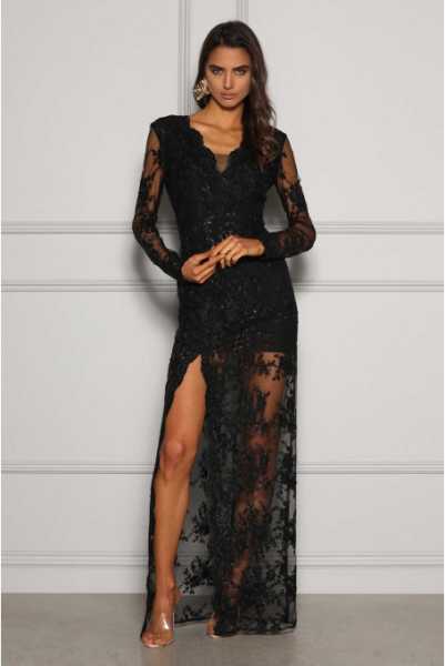 Sukienka na czerwony dywan! Ażurowo-cekinowe dzieło sztuki - tak najprościej można opisać sukienkę, na punkcie której zwariujecie. Długość maxi to idealnie rozwiązanie jeżeli poszukujesz sukienki na bal czy uroczystą galę. Sukienka pięknie podkreśli zgrabne ramiona i szczupłą talię. Pamiętaj, żeby ostrożnie dobierać dodatki ponieważ cekinowa sukienka nie potrzebuje przesadnej biżuterii czy wzorzystych torebek. Mocne rozcięcie na nodze oraz przezroczystości to bardzo kobiece i sensualne akcenty tej kreacji.