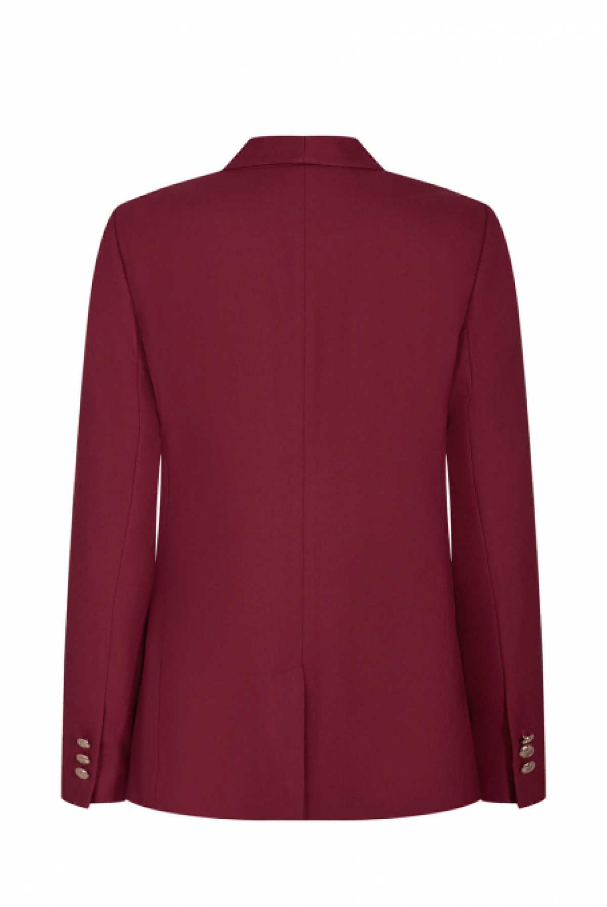 Bordowa marynarka w stylu soft office. Idealna do pracy i na ważne spotkania biznesowe. Wykończona złotymi guzikami. Świetnie wygląda z beżowymi i złotymi dodatkami. Noś również z sukienkami.
