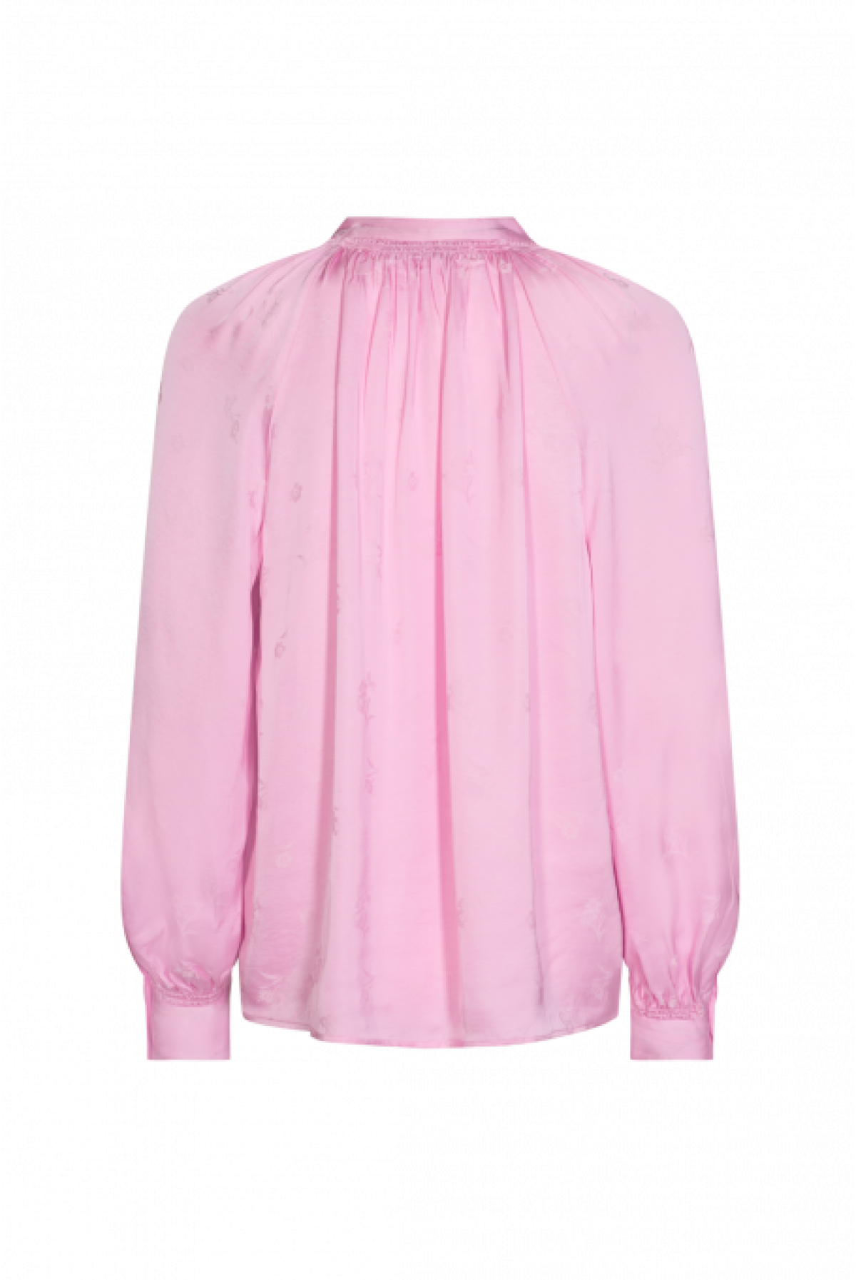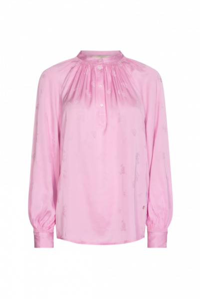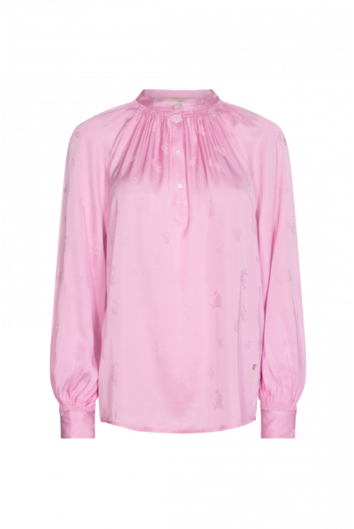 Elagancka bluzka wykonana w 100% z jedwabiu. Drobny print, poszerszony rękawek. Jakość premium prosto z Danii. Na co dzień noś luźno z jeansami. Na większe okazje załóż z eleganckimi spodniami garniturowymi. Stylizuj z bielą, czernią, złotem czy pastelami