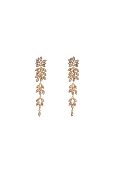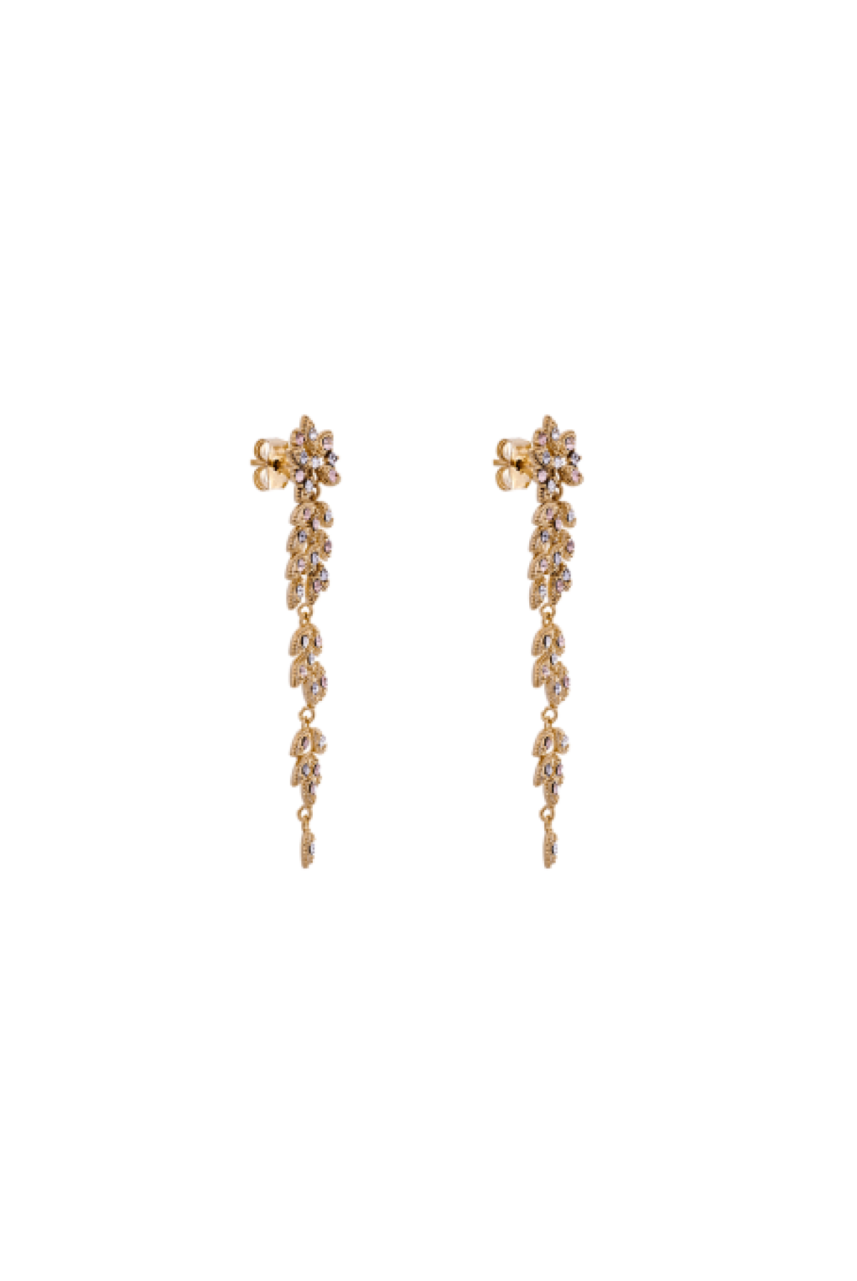 Długie, złote wiszące kolczyki wysadzane kryształkami SWAROVSKI® CRYSTAL zapinane na sztyft podbiją serca najbardziej wymagających kobiet. Kolczyki są niezwykle efektowne ze względu na design jak i precyzyjne wykonanie dzięki czemu będą idealnie komponować się z suknią wieczorową czy koktajlową.