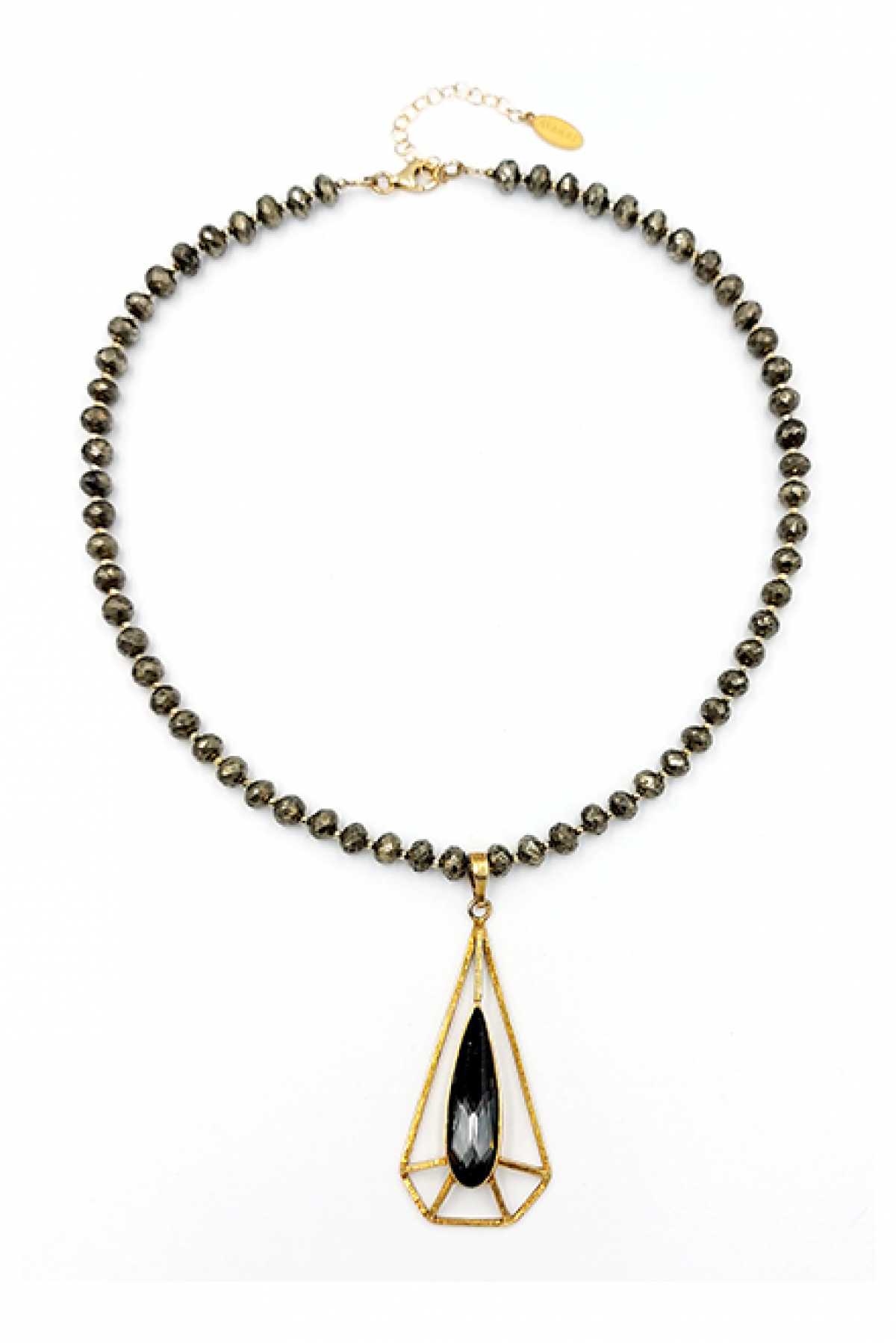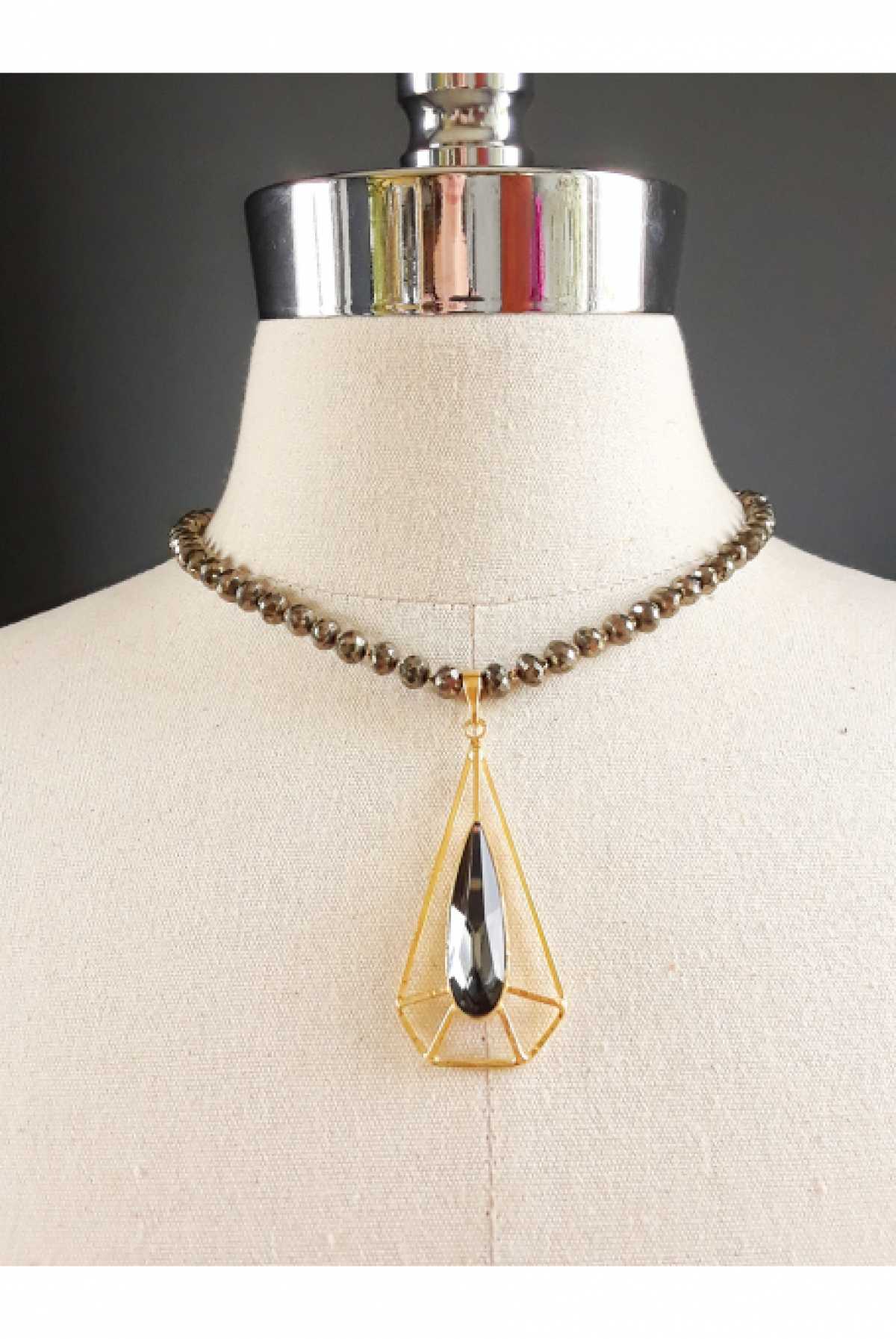 Bardzo luksusowy naszyjnik, pozłacany, zdobiony kryształami Swarovskiego. Kamień ozdobny mieni się niesamowitą paletą barw. Noś z głębokimi dekoltami na V lub okrągłymi. Najwyższa jakość wykonania prosto z Nowego Jorku.
