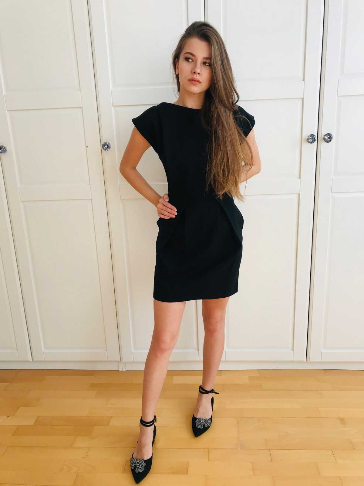 Krótka sukienka Dolce&Gabbana z krótkim rękawem, zwężana w talii, z zakładkami. Kieszenie po bokach. Jest bardzo uniwersalna i pasuje na wiele okazji, zwłaszcza, gdy chce wyglądać się szykownie i elegancko.